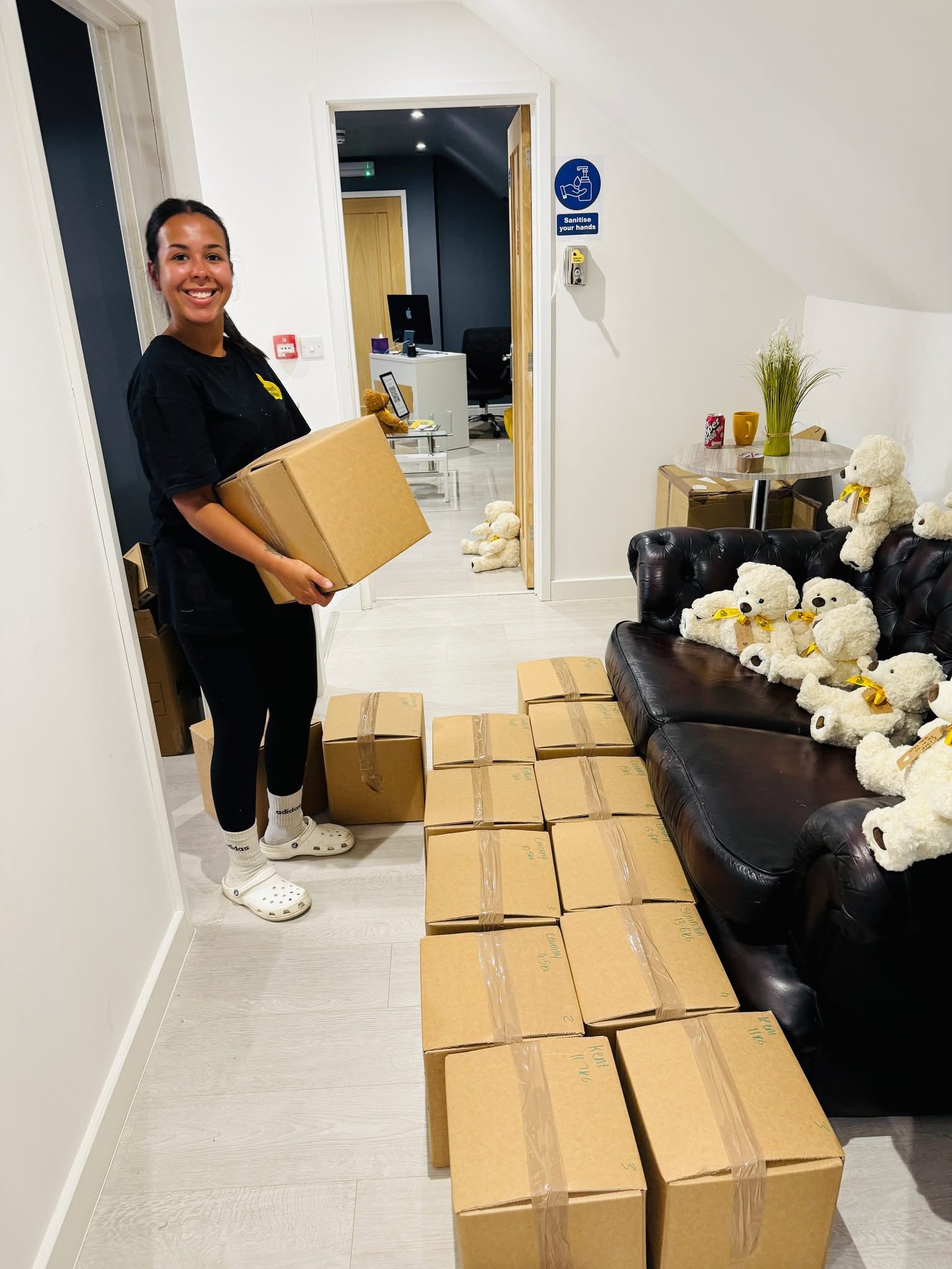 Every Birthweight Bear begins in Chantelle’s colourful workshop, where ribbons, bows, and baby fluff fly everywhere. She hand-crafts each bear with care, matching the exact birth weight of your little one. Benny (the classic bear) and Remi (the rainbow bear) are her pride and joy, and soon your baby’s bear could join their cuddly family too.