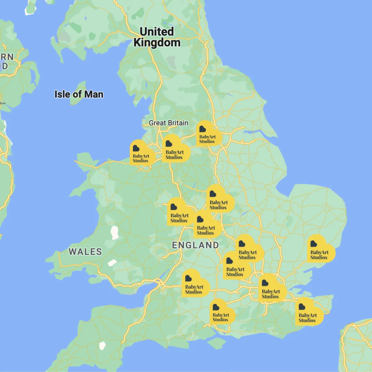 With 14 locations across the UK, you’re always close to capturing your family’s most precious milestones. From maternity to newborns, Little Sitters, and Cake Smash sessions, we’re here to create beautiful, lasting memories wherever you are. Explore the map below to find your nearest Baby Art Studio and begin your journey with us today.